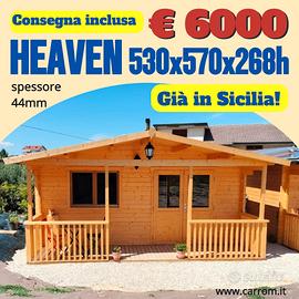 €6.000,00 CASETTA DI LEGNO HEAVEN - 530x570x268h 2 LOCALI, DOPPI VETRI DGP CON PAVIMENTO - VERANDA VENDUTA A PARTE;
