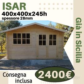 €2.400,00 CASETTA DI LEGNO ISAR 28mm di spessore 400x400x245h cm, CON PAVIMENTO wk 17;