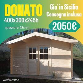 €2.050,00 CASETTA DI LEGNO DONATO 400x300x245h cm SPESS.28 mm CON PAVIMENTO;