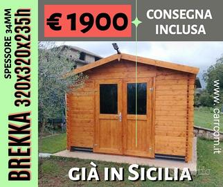 €1.900,00 CASETTA DI LEGNO BREKKA 320x320x235h SPESS.34 mm CON PAVIMENTO;