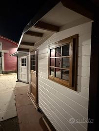 CASETTA A DUE FALDE 3X2 CON PORTA E FINESTRA CON PERLINATO DA 28mm E TETTO SPESSORE 25mm + GUAINA CATRAMATA AUTOADESIVA CON GRONDE E ANGOLARE IN LAMIERA TDM