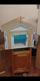 vendo casette per presepe fatte in casa, un antica osteria, una chiesa , una capanna con colonne e due casette con caminetto fontana e qualche arredamento. le vendo in blocco o singolarmente, e ho disponibile anche un video per vederle meglio.