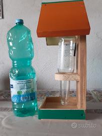Una casetta e due mangiatoie per uccellini costruite da me artigianalmente usando solo una sega, una levigatrice, del legno massello riciclato, dei chiodini e tanta fantasia e tempo.