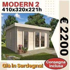 €2.130,00 CASETTA DI LEGNO MODERN2. 410x320x221h cm spessore 28mm senza pavimento;