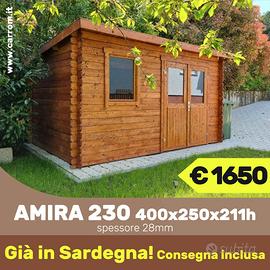 €1.650,00 CASETTA DI LEGNO AMIRA 230 400X250X211h cm 28mm senza pavimento;