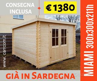 €1.380,00 CASETTA DI LEGNO MIAMI 300x300x211h 28mm senza pavimento con guaina;