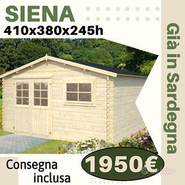 €1.950,00 CASETTA DI LEGNO SIENA 410x380x245h cm spessore 28mm senza pavimento;