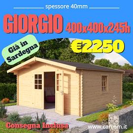 €2.250,00 CASETTA DI LEGNO GIORGIO 400x400x245h cm spessore 40 mm, senza pavimento, senza guaina;
