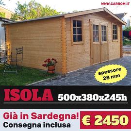 €2.450,00 CASETTA DI LEGNO ISOLA 500x380x245h spessore 28 mm, senza pavimento, con guaina;
