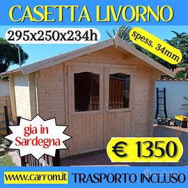 €1.350,00 CASETTA DI LEGNO LIVORNO 295x250x234h cm spessore 34mm, senza pavimento, senza guaina;