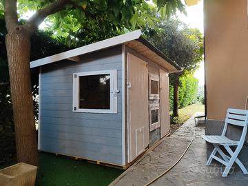 casette in legno di abete costruite su misura con doghettato di abete da 2 cm più intelaiatura interna da 4x4 base rialzata da terra con listelli e tetto con guaina ardesiata rossa o verde. chiamare per qualsiasi informazione