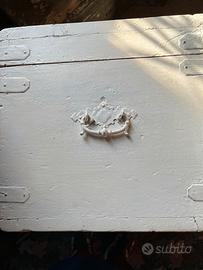 Questa cassapanca vintage è realizzata artigianalmente in legno massello d'abete e inserti in ferro , resraurata bianco shabby. Aprendo la seduta si accede a un comodissimo vano contenitore dove è possibile inserire vari oggetti.