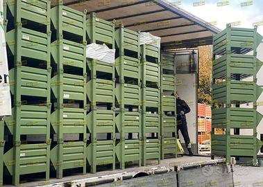 casse industriali a bocca di lupo usate impilabili ad incastro. Le pareti e la base sono in lamiera grecata per aumentarne la portata e l’indeformabilità. Il lotto è di OTTIMA QUALITA’. Misure mm 820x620+175 h605 portata 600 kg. Proposta salvo il venduto. Prezzi e disponibilità su richiesta a Polycube srl riferimento codice MC037-32. Possibilità di spedizione.