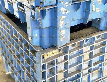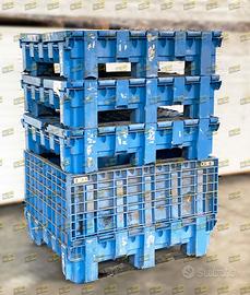 Contenitori o cassoni industriali in plastica richiudibili abbattibili marca JCOPLASTIC modello CTA 760-BOX usati. Sono impilabili o accatastabili ad incastro sia da aperti che da chiusi, hanno 6 piedi e due traverse. Misure mm 1200x1000 h760. Maggiori dettagli e richiesta prezzi solo dal nostro sito polycube(punto)it