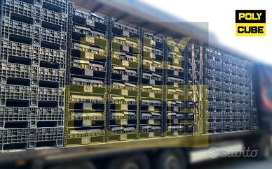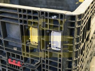 Contenitori industriali in plastica marca ORBIS. Sono abbattibili o richiudibili per abbattere i costi di trasporto nella logistica di ritorno, sono impilabili ad incastro sia da aperti che da chiusi, hanno le slitte su tutti i lati e gli sportellini per il prelievo del materiale anche quando sono accatastati. Lotto di MEDIA QUALITA’: possibili rotture dovute alla presa con carrello elevatore. Misure esterne cm120x100h76 - Misure interne cm 112x91 h61 - Disponibili anche con misure cm80x77xh64, cm200x120 h87 ecm160x120 h88. Polycube Srl fornisce contenitori utilizzabili e pronti all’uso, il nostro obiettivo è quello di dare un quadro documentale più trasparente possibile (foto + descrizione). I contenitori non sono ripuliti e non vengono rimosse eventuali etichette. S.E.&O. Proposta da Polycube srl, salvo il venduto, possibilità di spedizione anche per piccoli quantitativi.