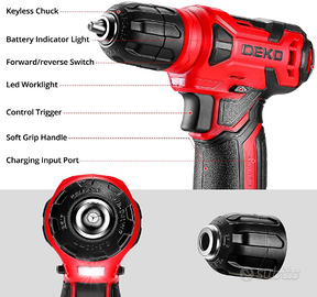 Utilizzare una batteria ricaricabile da 1.5AH. Il cavo trapano C-DEKO è dotato di un cavo di ricarica C-1.5AH. È possibile collegarlo a un caricabatterie universale o a un'uscita USB (5VD. C) per caricare l'utensile. Quando l'indicatore verde della batteria è stabile e non lampeggia, la batteria è piena