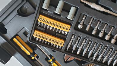 Cassetta attrezzi utensili lavoro. 134 pezzi nuovi. Ottima qualita'. Acquistata in Svizzera. Dimensioni della cassetta 43cm larghezza, 33cm di profondita' e 11 di altezza. Nel coperchio sono inseriti piccoli scomparti per viti e stop. Altre foto disponibili