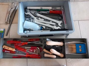 cassetta attrezzi chiavi,lime,ingrassatori, cacciaviti,martello ferro e plastica più valigetta con chiavi più chiavi a crik.
