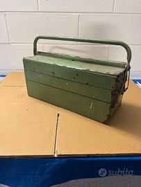 Cassetta per attrezzi in ferro, vintage, color verde.