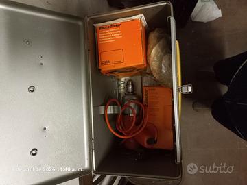 Cassetta di attrezzi Black&Decker di metallo. Misure: larghezza 22cm, altezza 29cm e lunghezza 41cm completa di: Trapano Black&Decker DNJ740 400w Sega circolare Black&Decker D984 Levigatrice Black&Decker D988 Vari dischi ed accessori Gli attrezzi sono funzionanti e possono essere provati prima dell'acquisto
