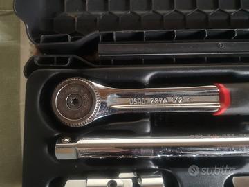 Cassetta di bussole Usag con attacco da 1/2 pollice, praticamente nuove e mai usate, solo qualche lieve riga sulla casetta dovuta allo strisciamento, vendo per inutilizzo..