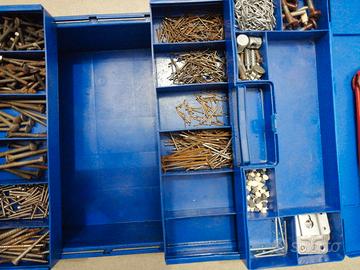 CASSETTA PORTA ATTREZZI CONTENENTE: SPAZZOLA DI FERRO, LIMA, PAPPAGALLO, CHIAVE A RULLINO, PINZA,MARTELLO, PINZA A BECCHI, FORBICE DA ELETTRICISTA, SERIE CHIAVI, CHIAVI A TUBO, CHIAVI A BRUGOLA, TAGLIERINO, SET DI CACCIAVITI GRANDI E PICCOLI, CACCIAVITE CERCA FASE, SCATOLETTA CONTENENTE CHIAVI A BUSSOLA E INSERTI CACCIAVITE A TAGLIO E A STELLA, 2 TIPI DI ADATTATORI GRANDE E PICCOLO PER ABRASIONE, INSERTI PER ABRASIONE, MOLE PER MOLARE PUNNTE ECC ECC, METRO, PROLUNGA