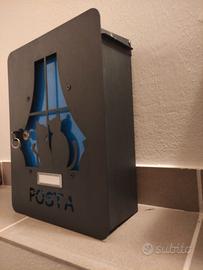 Cassetta lettere fissaggio a muro esterno. Con grafica gatti e sfondo blu. Capiente.