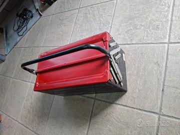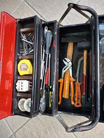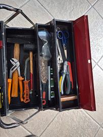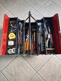 Cassetta porta attrezzi/utensili in ferro a 5 scomparti, completa di vari utensili: