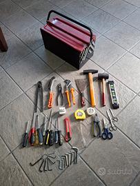 cacciaviti a taglio e croce, tronchesi, pinza, tenaglia, martelli ferro e gomma, livella a bolla, spazzola ferro, spatola, cutter, metro, occhiali, nastro, multipla, forbici e chiavi a brugola.
