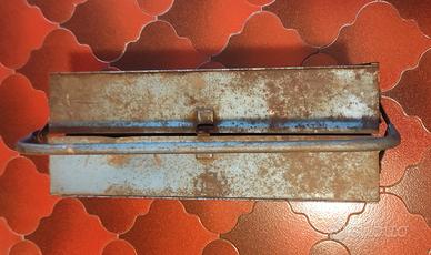 cassetta porta attrezzi vintage in metallo - 4 scomparti -mis 53x21x21 - anni 60 - presenta segni del tempo.