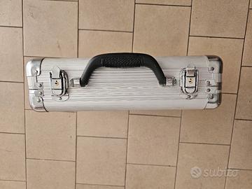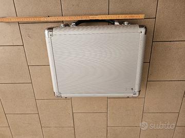 Valigia in alluminio porta oggetti con intero in gomma piuma. Doppia serratura con chiave. Dimensioni 40x30x10 come da foto.