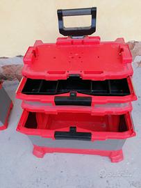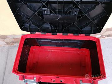In materiale polipropilene e metallo, cassetta superiore con vaschetta estraibile, separabile con la semplice pressione di un bottone per permettere il trasporto del singolo elemento