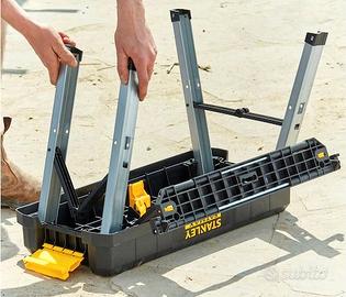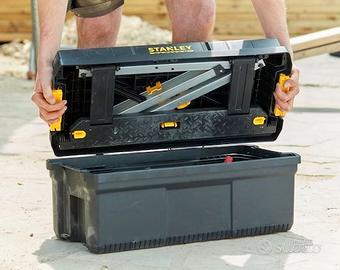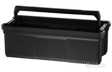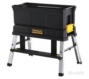 Unisce i vantaggi di una cassetta portautensili con quelli di uno sgabello con postazione di lavoro sollevata. Struttura leggera e facile da trasportare, gambe in alluminio robuste e piedini antiscivolo. Impugnatura per il trasporto. Altezza dello sgabello 45 cm, gradino robusto in plastica e metallo, ideale per imbiancare e lavori di cartongesso. Bottone per il bloccaggio del gradino, cerniere laterali a doppio uso: chiusura della cassetta e aggancio della cassetta allo sgabello. Soluzione ergonomica: evita all’utilizzatore di piegarsi verso la cassetta degli attrezzi. Capacità di carico dello sgabello 150 kg, cassetta 30 kg. Conforme a normativa EN 14183. Peso 6,2 kg. Dimensioni 64×29,6×28,7 cm, superficie d’appoggio 53×25 cm.