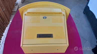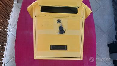 Cassetta per la posta colore giallo con chiave serratura a bussola con doppia chiave Praticamente nuova MISURE : BASE 25 TETTO 36 H.37 P.10 VISITATE ANCHE PER CURIOSITÀ GLI ALTRI MIEI ANNUNCI. Grazie