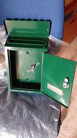 Cassetta portalettere in acciaio verniciato a fuoco colore verde RAL. misure 30 x 21 spessore 6 anta con chiave e coperchio superiore apribile nuova mai usata