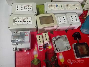 materiale per impianto elettrico 1 Cassetta porta interruttori 2 interruttori 380 volt 2 interruttori salvavita e altri 50 metri circa di cavo giallo verde 1,5" 2 cassette esterne per moduli interruttori cassette esterne con prese semplici e sciuko 1 cassetta esterna per 4 sciuko attuale ne sono 2 + 3 normali 1 tubo corrugato 35mm x 6 metri tubi da 20 25 35 rimanenze di misure 10 prese + supporto + placcha simil BTicino altre prese interruttori serie BTicino anni 70/80 1 plafoniera neon 60 cm Se andate a comprare a nuovo hli iinterruttori e prese copia BTicino li pagate 2,5 a 3 euro , 2 euro supporto e 1 euro placchetta , la cassetta quadro BTicino costa 45 euro , tutto questo materiale che ho in vendita è come se pagate 1 euro a pezzo . Causa lunghezza tubi non è possibile spedizione con essi avviene senza la merce si può spedire in contrassegno , si anticipano i 15 euro di
