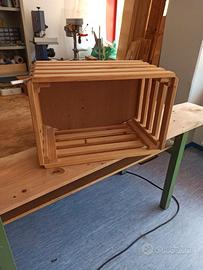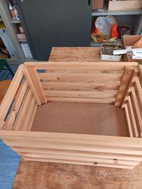 Cassette/scatole in legno di Pino. Molto robuste e ottime per riporre oggetti, salva spazio, come arredamento, possono fungere da libreria. Misure 58x38x32.5 cm 6 cassette/scatole disponibili a 10 € CAD. uno