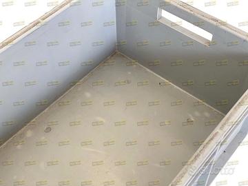 Cassette in Plastica usate professionali marca Plastic Werke GmbH modello newbox42 colore grigio formato Euro Norma cm 60x40. Sono accatastabili ad incastro, hanno il fondo e le pareti interne lisce e le maniglie aperte sui lati corti per la presa manuale. All’esterno hanno le nervature per garantirne robustezza e stabilità anche se impilate a pieno carico. Sono utilizzate per lo stoccaggio, la movimentazione e la disposizione di minuterie, componentistica e ferramenta. Lotto di BUONA QUALITA’ come da documentazione fotografica. Prezzo su richiesta, disponibilità SALVO IL VENDUTO. Misure esterne mm 600 x 400 h 220 lotto minimo 20 pezzi.