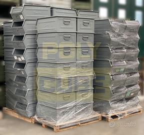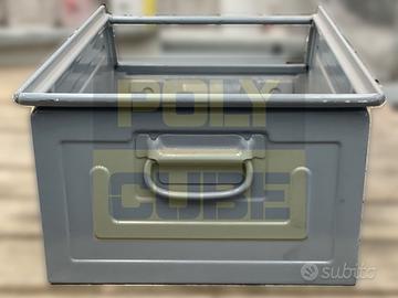 Cassette a bocca di lupo in acciaio verniciato usate per minuteria pesante marca Fami, modello FLS89010A01 misura 5. Sono accatastabili ad incastro ed hanno il traversino frontale e la maniglia posteriore per la presa manuale. Servono per lo stoccaggio e la disposizione di componentistica anche pesante. Sulla parte frontale hanno il porta etichette e su richiesta sono forniti anche i divisori. Usato di ottima qualità. Misure mm 700 x 450 h300. Prezzo su richiesta in base alle quantità, proposta da Polycube srl - salvo il venduto, possibilità di gestione della spedizione. Disponibili anche con misure mm345x210h200 fami misura 3 modello FLS41000A01.