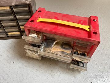 Cassette in plastica porta minuteria Dentro ci sono viteria varia , oring, segher, perni ecc 10 euro per tutte e 3 complete di minuteria