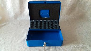 Per affare e consegna immediata chiamare al 3394342479 per accordi veloci. No perditempo! Nel mio negozio on-line sono disponibili numerosi articoli sia artigianali, sia oggetti d'occasione scontati! Prime 3 foto, cassetta completamente nuova costata 36 euro, vendo per inutilizzo scontata 20 euro. In pesante lamiera, verniciata a forno in polvere epossidica color Blu elettrico Dimensioni: Lunghezza: 30 cm, larghezza: 24 cm, profondità: 9 cm, Peso: 2,6 kg Vassoio portamonete euro rimovibile (27,5 x 13 x 3 cm) con scomparti per monete da 1 centesimo a 2 euro. Serratura di sicurezza a cilindro con 2 chiavi. Resistente ai graffi, verniciata a polvere. Maniglia di presa in filo d'acciaio nichelato incassata sul coperchio. Ultime 3 foto, seconda cassetta usata come in foto, vendo per inutilizzo. Dimensioni: 37x28x9cm. Funzionale però ci tengo a precisare che la serratura non ha più le chiavi originali. La cassetta si chiude ma con un'altra chiave. Per chi vuole totale sicurezza può semplicemente sostituire la serratura, oppure utilizzarla come cassetta dei ferri o altro di vostra esigenza. Confermo che l'esterno della cassetta è come nuova. Vendo 10 euro, oppure posso anche scambiare con altro oggetto da visionare.