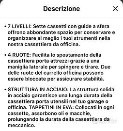 Cassettiera 7 cassetti officina ruote e chiavi