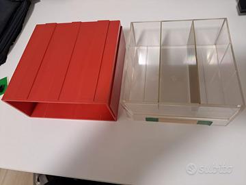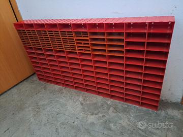 160 cassetti (li chiamo blocchi), come da foto possono incastrarsi perfettamente, ecco come li ho montati io, (nella foto non ci sono tutti). ci sono alcuni blocchi che nello stesso spazio hanno più cassettini e di forme diverse (conteggiati come un blocco). Ora vengono venduti solo a coppia di blocchi a €7,70 +iva+trasporto e solo della forma unica come da foto. Io vendo ogni blocco a €2,00 cadauno (€4 a coppia). Dimensioni cassetto interno mm.118x119x45. Vendo solo il totale blocchi completo. Possono essere reperibili anche nel comune di Granarolo dell'Emilia. Per la spedizione verificare bene le dimensioni del pacco o ne servono più di uno.