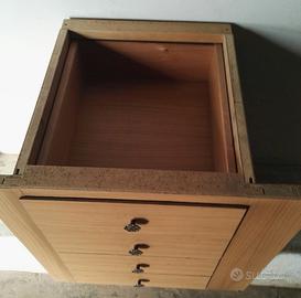 Cassettiera da incasso vano mobile.Dimensioni:Larghezza frontale 47 cm,profondità 40 cm(inclusi pomelli),Altezza 50 cm,Larghezza posteriore 33 cm.Anni'70,ottime condizioni.