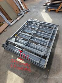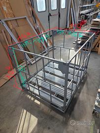 Cassoni contenitori pallettizzati in metallo verniciato, con sponde abbattibili, impilabili uno sull'altro. Si smonta e rimonta in un minuto senza ausilio di viti(tutto a incastro o con catenaccioli). Si movimenta facilmente con muletto o transpallet.