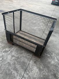 Cassone in ferro retinato con sportello apribile parte frontale lungh 1.24 largh 84 alt 97 fondo in ferro e legno come da foto ( prodotto industriale)super robusto si puo’ prendere con ganci dall alto si puo’ prendere con muletto o transpallet parte inferiore ulteriori foto su messaggistica subito vernice come da foto