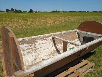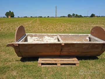 grande navazzo in legno x trasportare e pigliare l'uva. Misure 310x115, h63. utilizzabile anche come grande fioriera o orto sopraelevato.