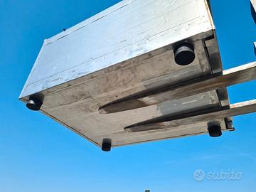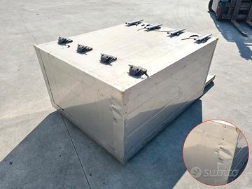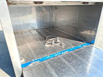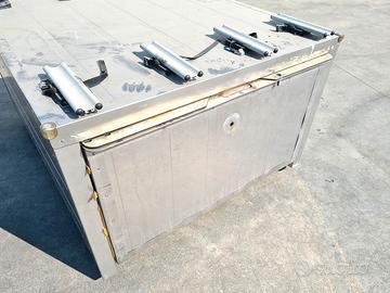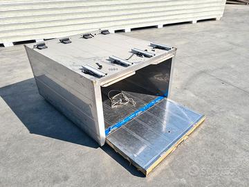 cassone per pickup usato, si tratta di un container artigianale costruito per stare sul cassone di un Ford Ranger utilizzando pannelli coibentati sp. 6cm in acciaio inox. la scatola dispone di quattro piedini in gomma, uno sportello con doppia flangia in inox spesso e robusto con maniglia e fori per l'uso di un lucchetto, sulla parte superiore sono montati quattro posti porta bici. malgrado la costruzione eseguita molto bene i profili interni ed esterni che tengono assieme il tutto risultano taglienti in alcuni punti. dimensioni: 147X115cm h71cm, interno 130X102cm h58cm