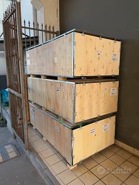 Vendo cassoni in legno professionali da trasporto, utilizzati per la consegna di attrezzature fitness.