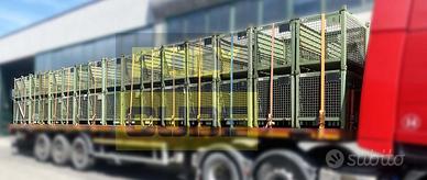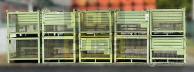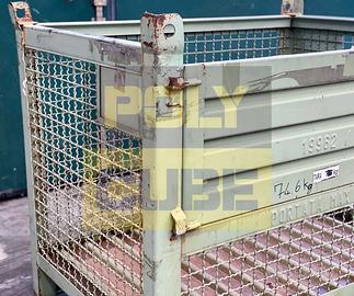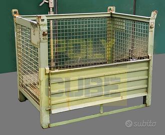 Cestoni, ceste metalliche o gabbie industriali usate impilabili ad incastro, con pareti in rete d’acciaio elettrosaldata, struttura in angolare d’acciaio, base e anta in lamiera grecata e fori sulle alette per il sollevamento. Le pareti in rete metallica permettono l’individuazione visiva del contenuto, sono movimentabili con muletto e transpallet, hanno l’apertura a ribalta sul lato lungo così da consentire il prelievo del materiale anche quando sono accatastati. Hanno dei comodi porta etichette sia sul lato lungo che corto. Misure interne mm 1200 x 800 h 1000 - Misure esterne mm 1200 x 800 h 800 - Misura anta apribile 1200 x 380 - Portata kg.800. Il lotto si presenta in buone condizioni di mantenimento. Proposta da Polycube srl – salvo il venduto riferimento prodotto MCMC036-08. PREZZO SU RICHIESTA, SCONTISTICA PER QUANTITA' (disponibilità di migliaia di modelli di contenitori usati subito pronti a magazzino)